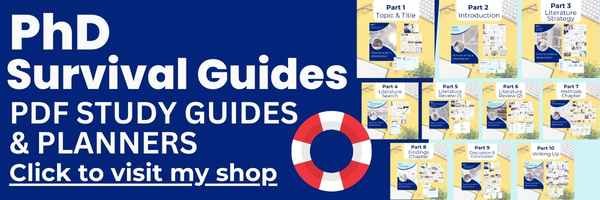 Check out my range of PhD Survival Guides, which walk you step-by-step through the process of developing your thesis, one chapter at a time. Click here to learn more.